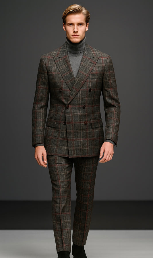 Milano Charcoal & Red Plaid Suit