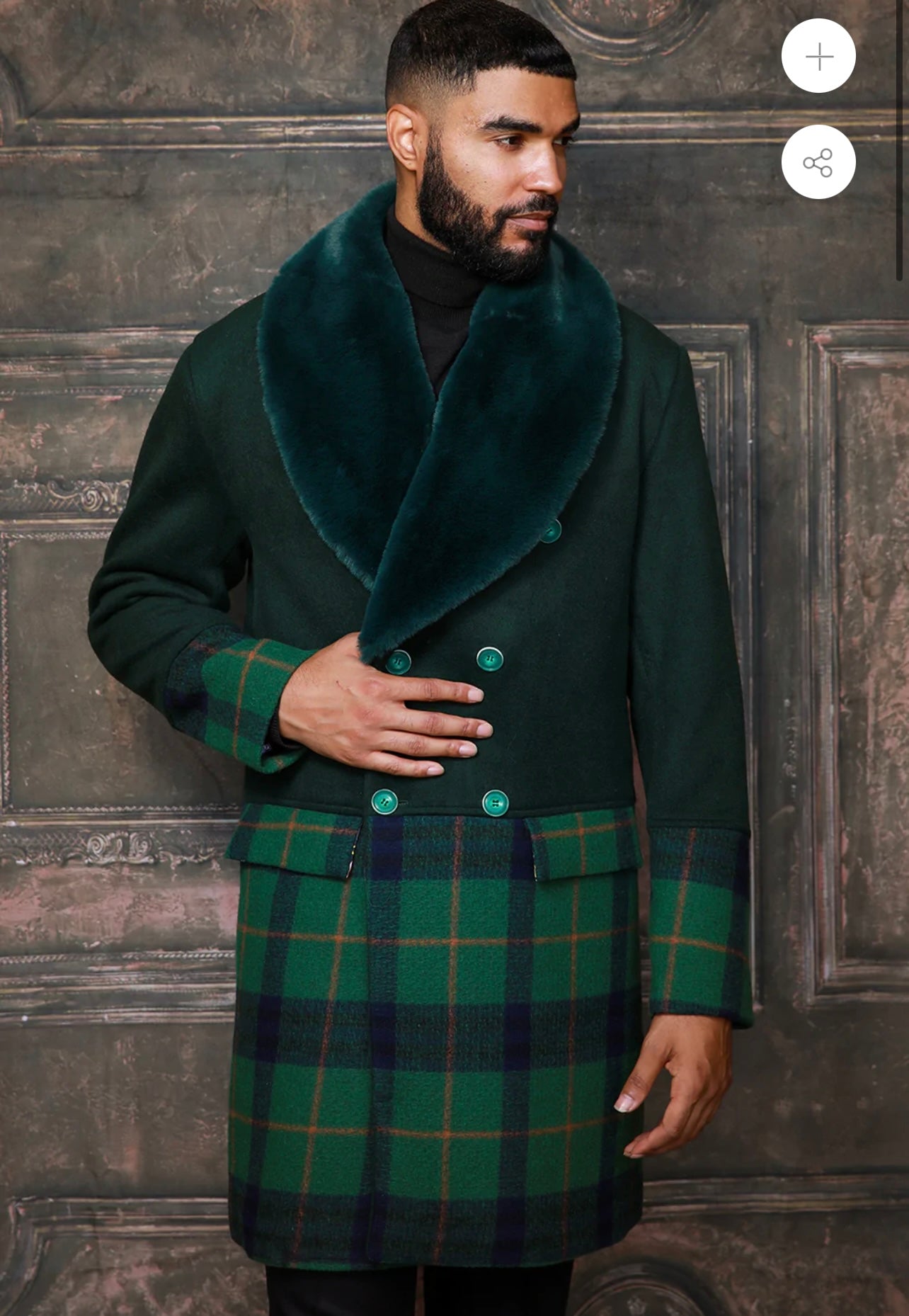 Gray combo only available top half is gray. Bottom plaid is navy gray And rust. Fur is removable so you can west as a trench in the fall months then for added style and warmth add fur collar trim.