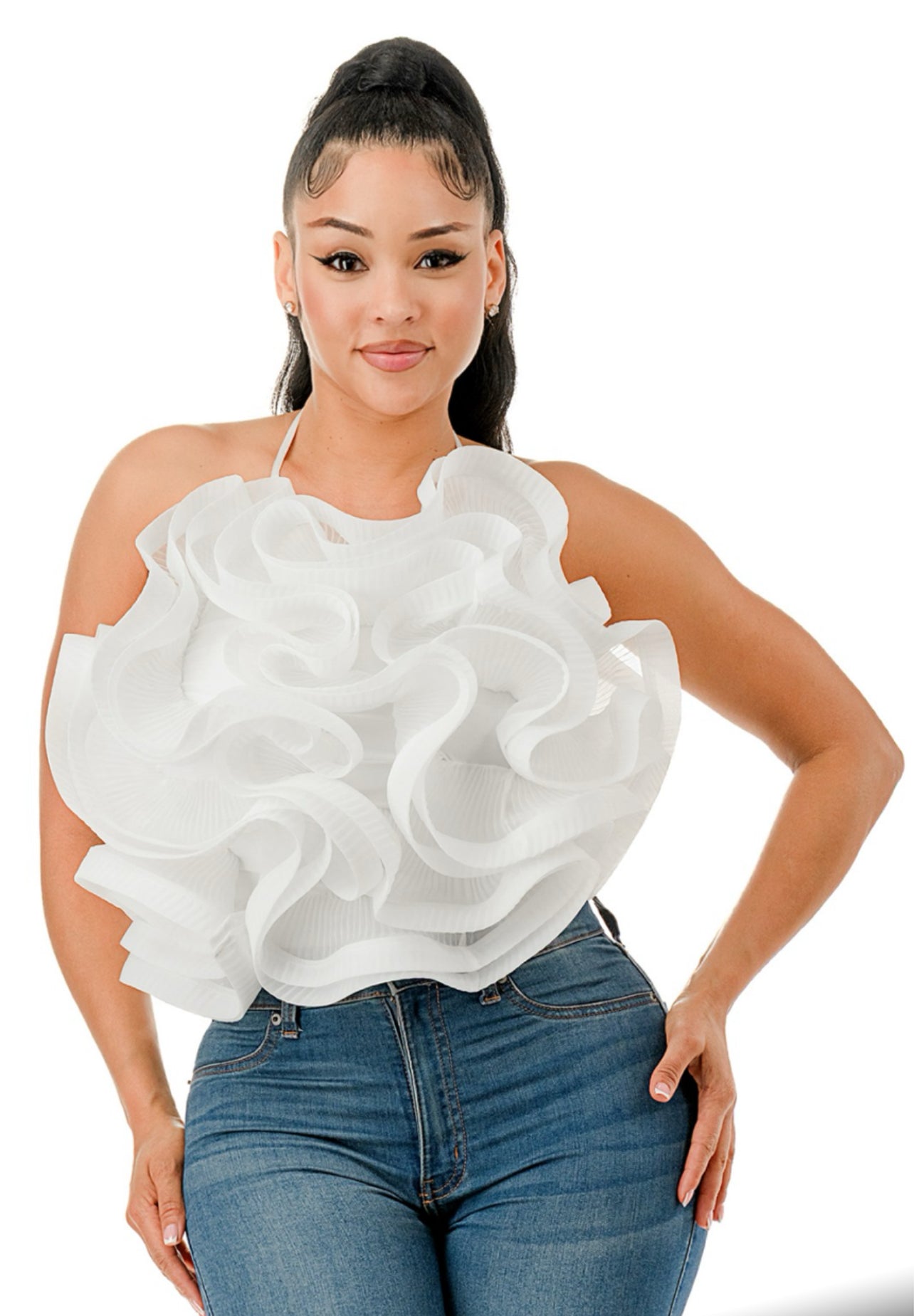 Turn heads and steal the spotlight in our Bloom Babe Ruffle Top. Featuring a bold, oversized floral-inspired ruffle design, this one-shoulder statement piece brings high-fashion drama with a feminine twist. Perfect for birthdays, brunches, or any moment you want to stand out, this top pairs effortlessly with fitted jeans or a sleek skirt. Style it loud, wear it proud — this top is the moment.