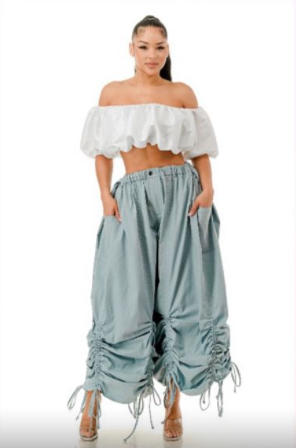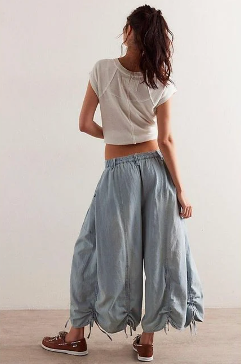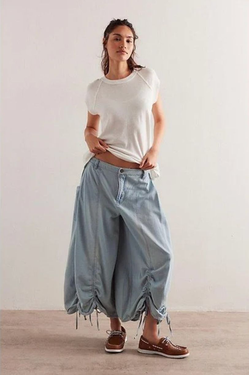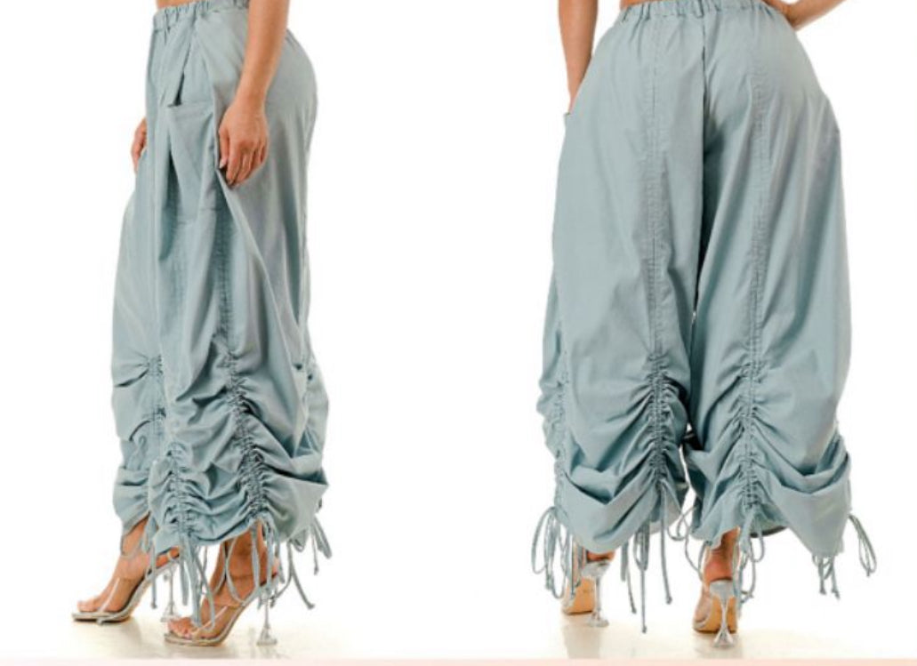 Run oversized, Elevate your streetwear game with our Cloud Ruched Parachute Pants. the ultimate blend of edgy and effortless. These lightweight, oversized pants feature adjustable ruched detailing along the legs and drawstring accents at the hem for a customizable fit and unique silhouette. Designed for movement, comfort, and style, they’re perfect for pairing with crop tops, bodysuits, or hoodies.