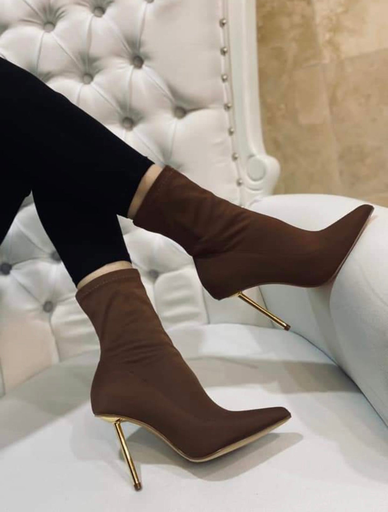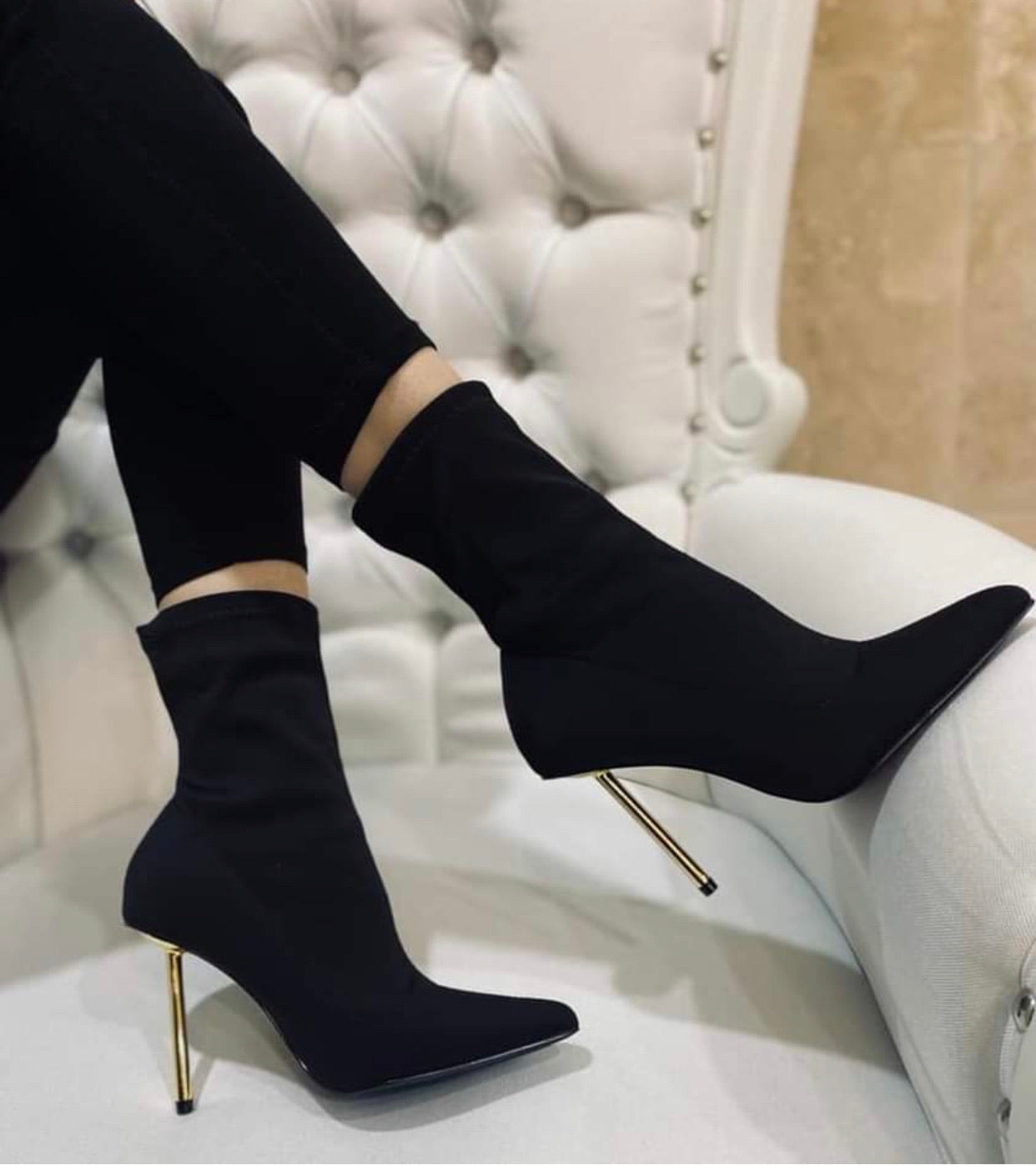 New Dakia Ankle Boot is a must have. Dope unique floating gold heel and stretch ankle makes it perfect for all legs