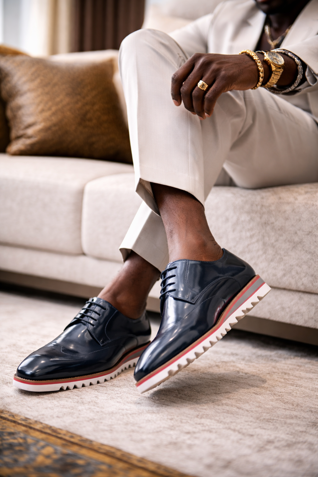 Presenting our Derby Shoe, a distinguished blend of classic and contemporary elements. This Blucher style Oxford features a plain toe adorned with wing-tip stitching, showcasing meticulous craftsmanship. The patina finishing adds a touch of sophistication, complemented by the plush leather lining for a luxurious feel. The double stitching welt not only reinforces durability but also enhances the overall aesthetic. Step with confidence on the lightweight contrast color rubber sole, ensuring comfort and style with every stride. Elevate your footwear collection with the timeless appeal and refined details of our Derby Shoe. ***** Instore means available for in store pick up. Special order requires 3-7days delivery. Priority Second day is available for up charge.