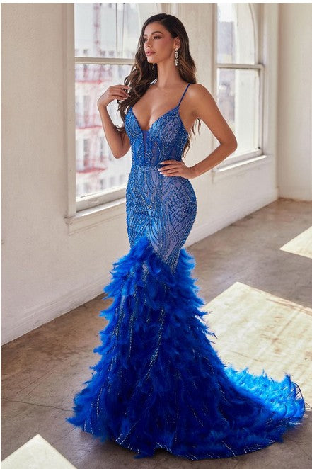 Fully Embellished & Feather Prom Dress