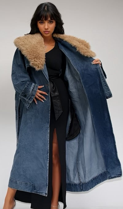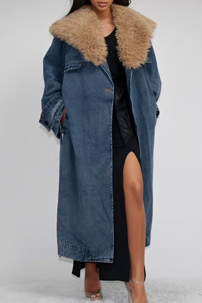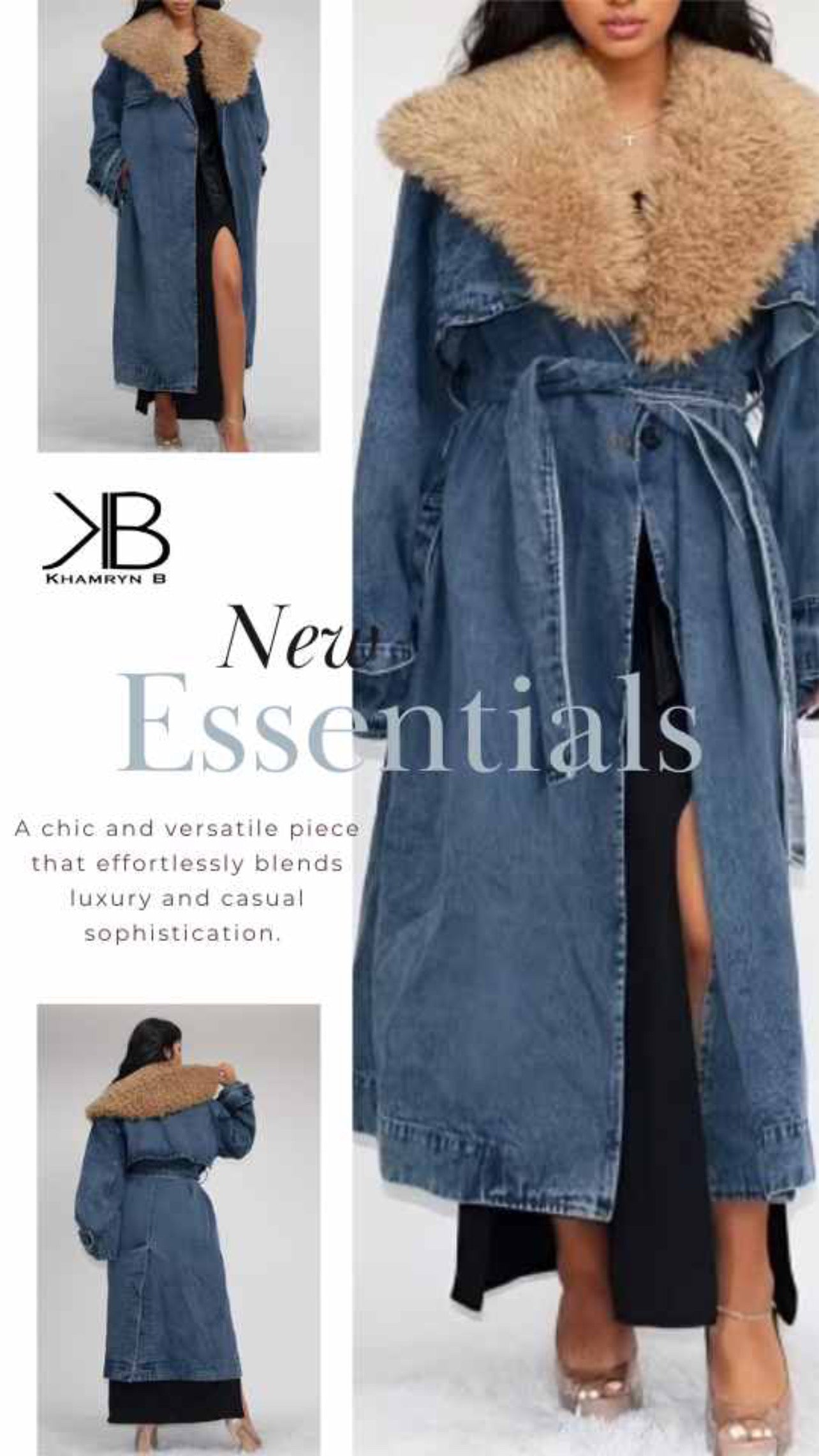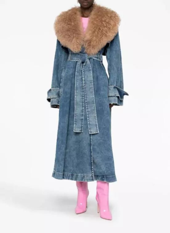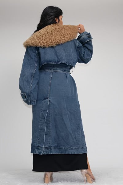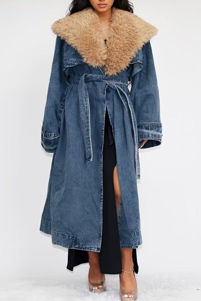 Step into elegance with our Detachable Fur Denim Trench Coat—a chic and versatile piece that effortlessly blends luxury and casual sophistication. The detachable fur accent adds a touch of glamour, allowing you to customize your look for any occasion. Elevate your style with this statement trench coat, perfect for those who appreciate the perfect fusion of fashion and functionality.