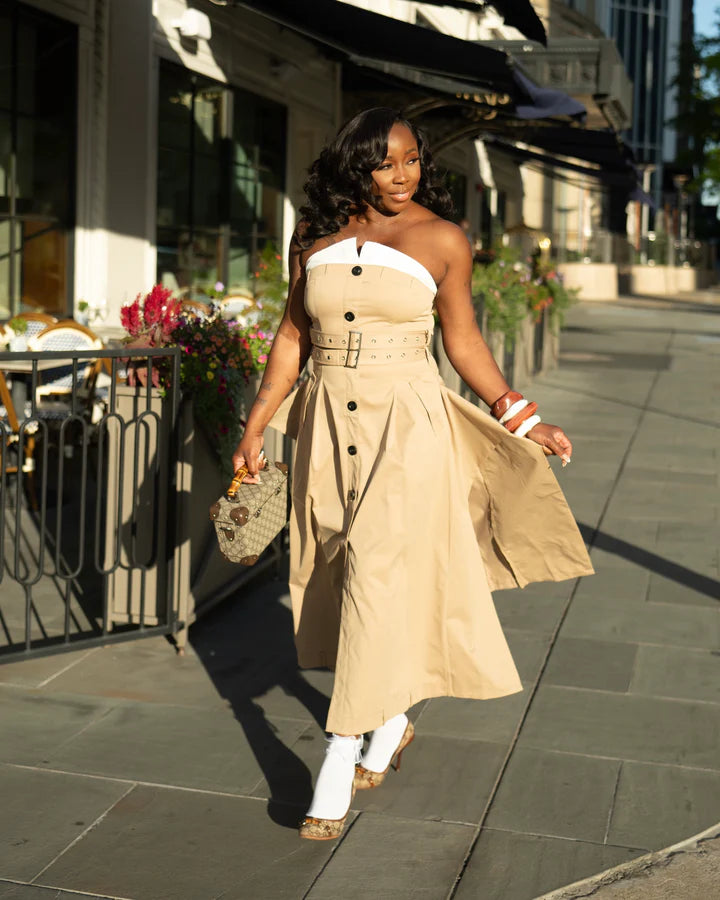Step out in style with the Ivy Trench Dress! This cute maxi dress features a charming white fold-over detail that adds a fresh, playful touch to a classic trench look. Flowing and flattering, it’s perfect for turning heads whether you’re out for brunch or a sunny stroll. Embrace effortless chic with a fun twist!