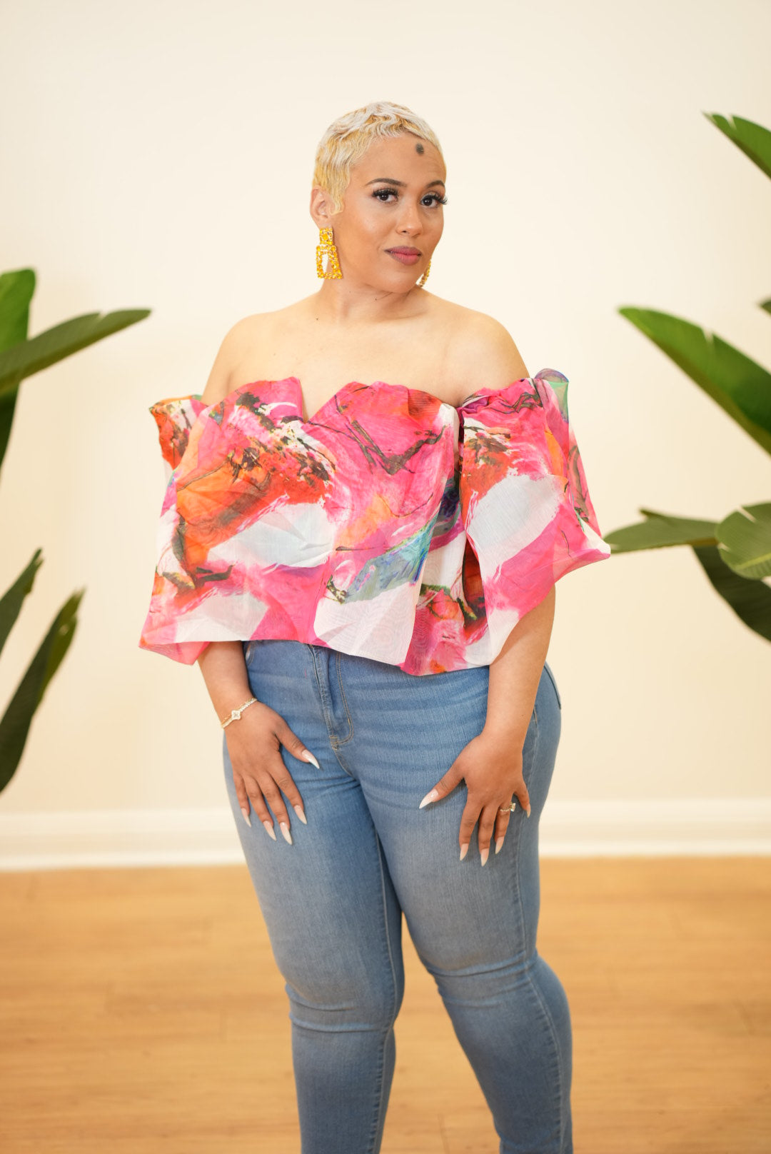 Designed to accentuate your feminine silhouette, this crop top features a flattering sweetheart neckline that beautifully frames the décolletage while the off-shoulder design adds a touch of romance and sophistication.