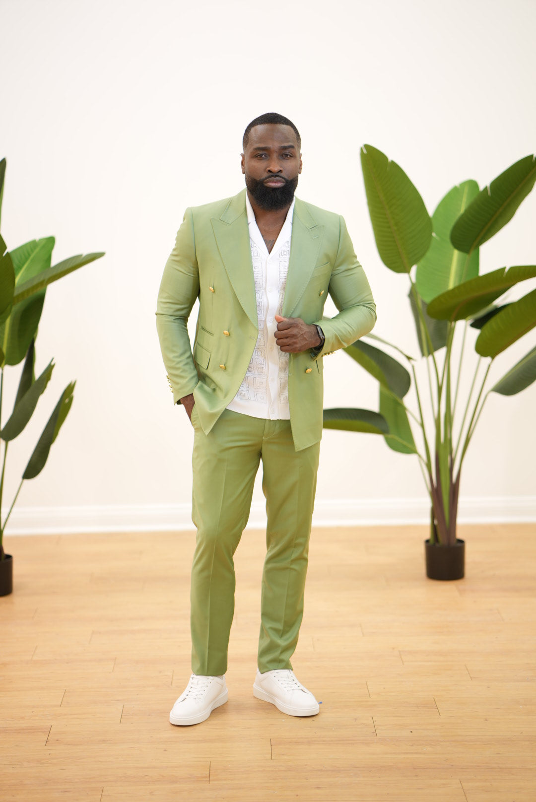 Our double-breasted suit is designed to flatter all body types with its peak lapel and precise pitch stitching. It offers customizable button options, including gold, wooden, marble, silver, or black/brown. Dress it up with a shirt and tie or down with a fashion knit top or t-shirt and sneakers, and learn to remix it 5-6 ways for endless styling possibilities.