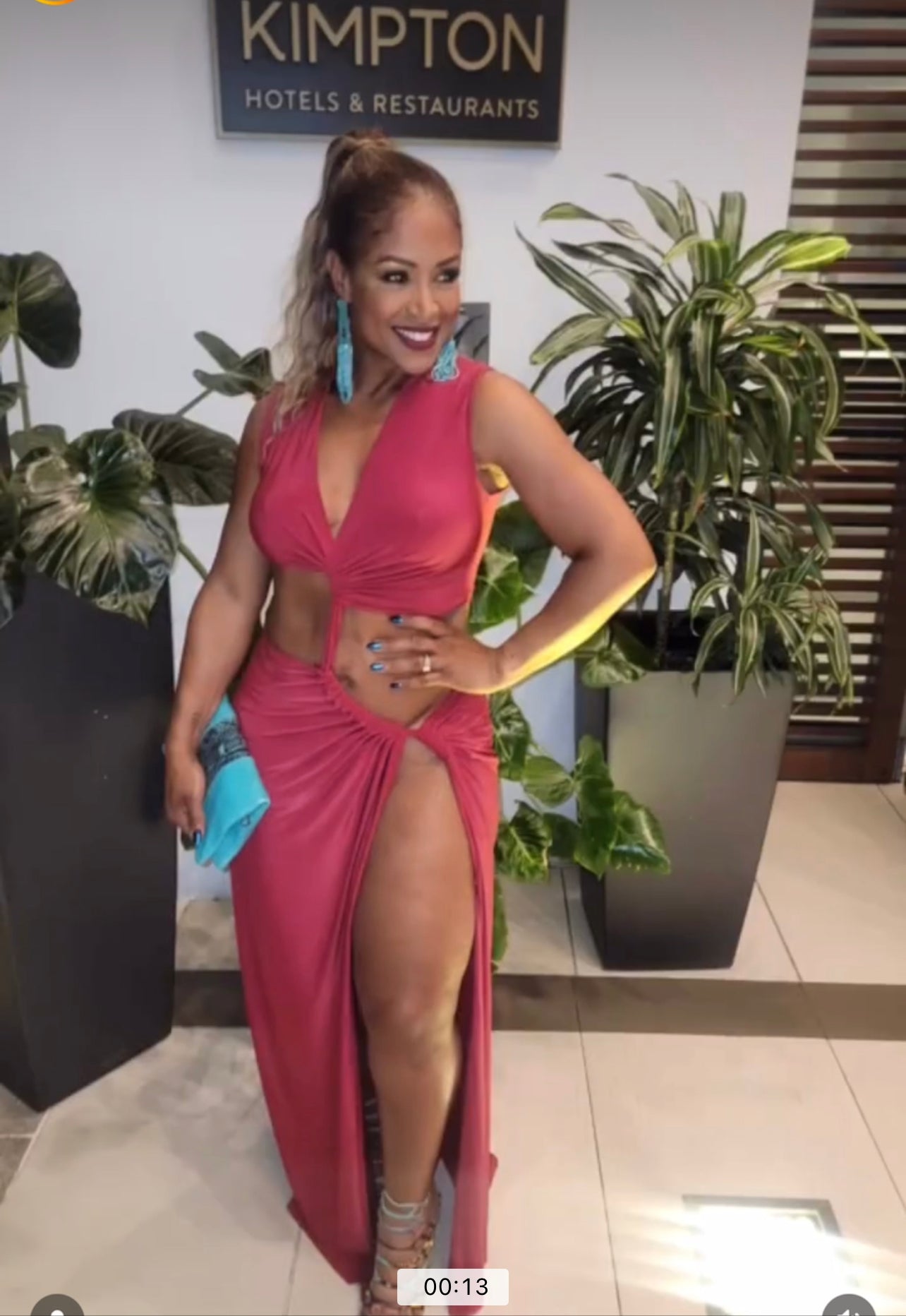 Val Warner killed Miami in this beautiful daring dress. Available in ruby or chocolate