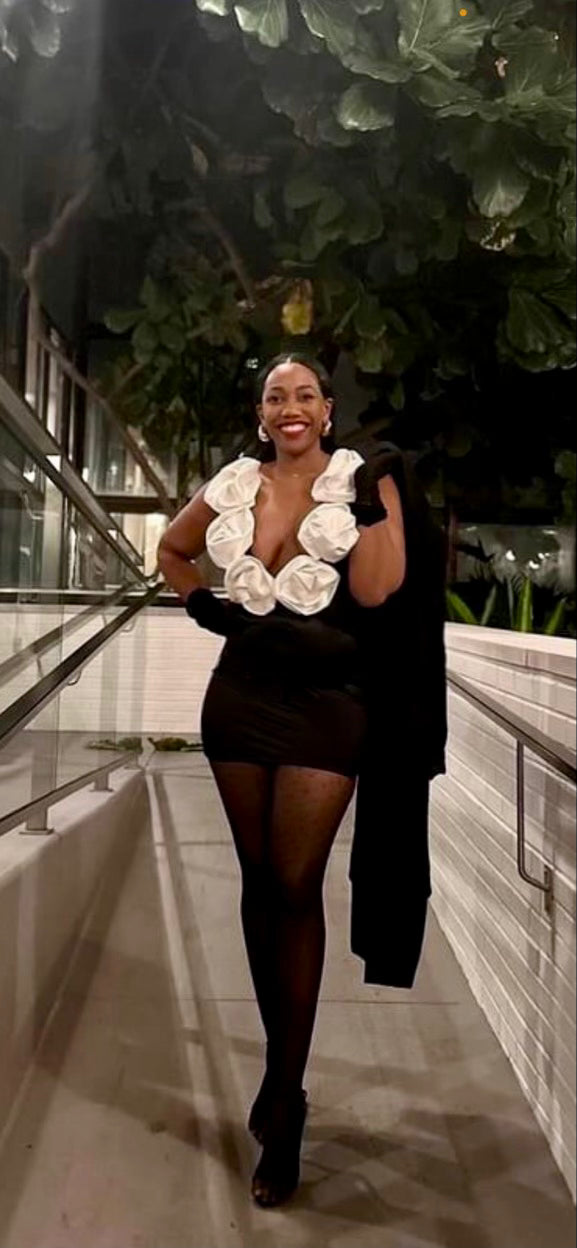 Intricate design stretch satin with beautiful, large white detailed flowers. Super mini looks great with sheer stockings or detailed tights.