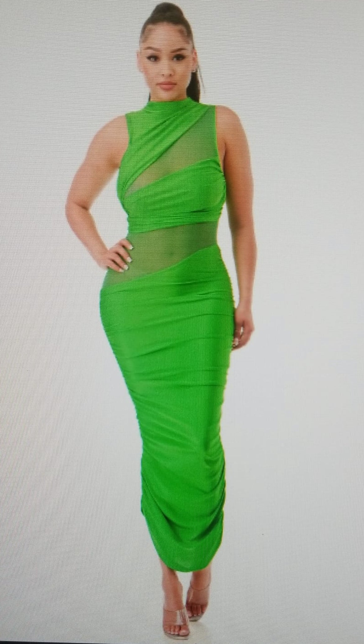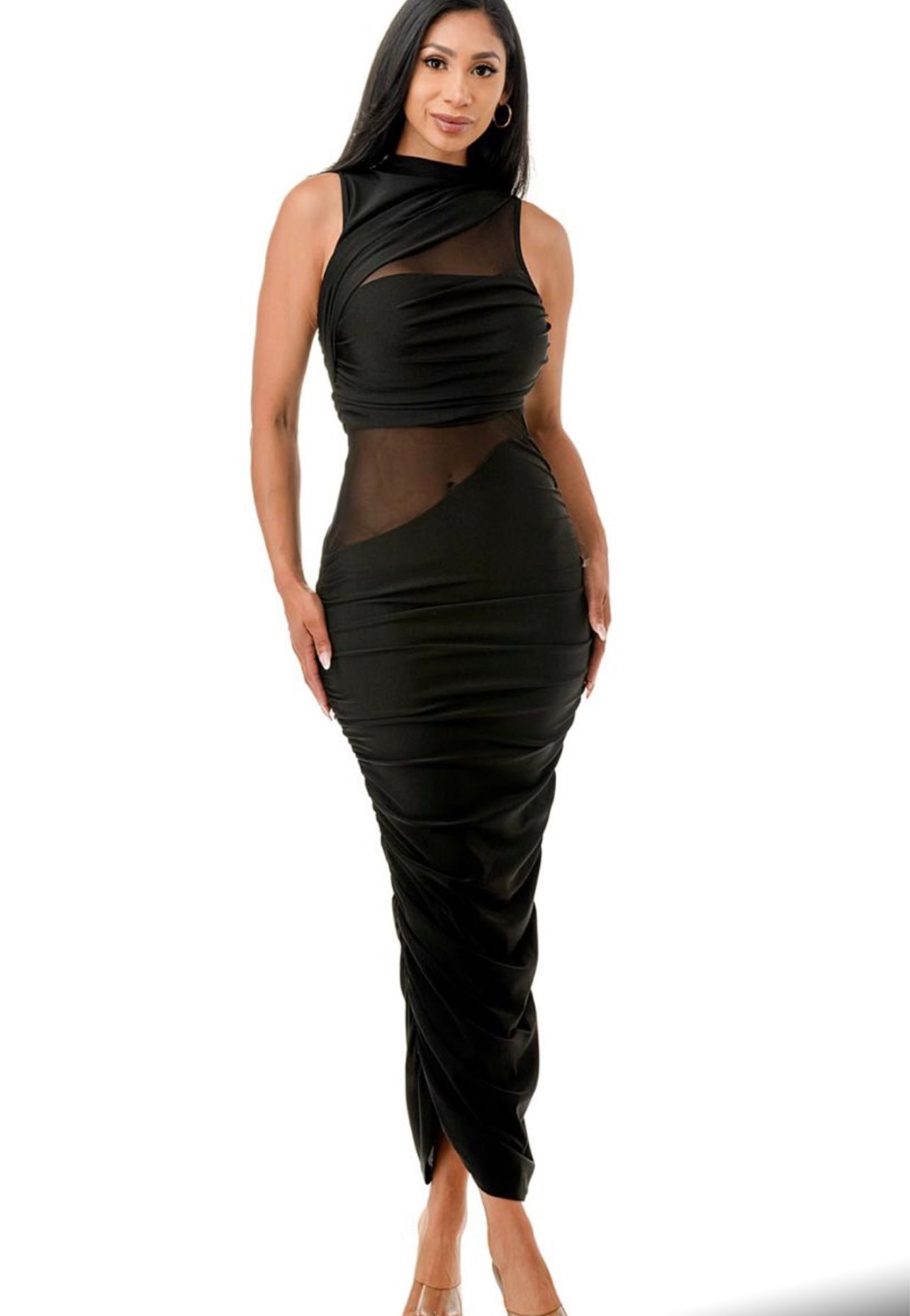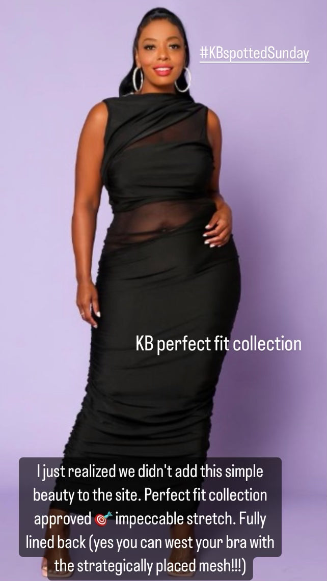 The perfect fit little black dress. Stretch’s to fit most body types. Mesh panels will allow for bra and any black undergarments
