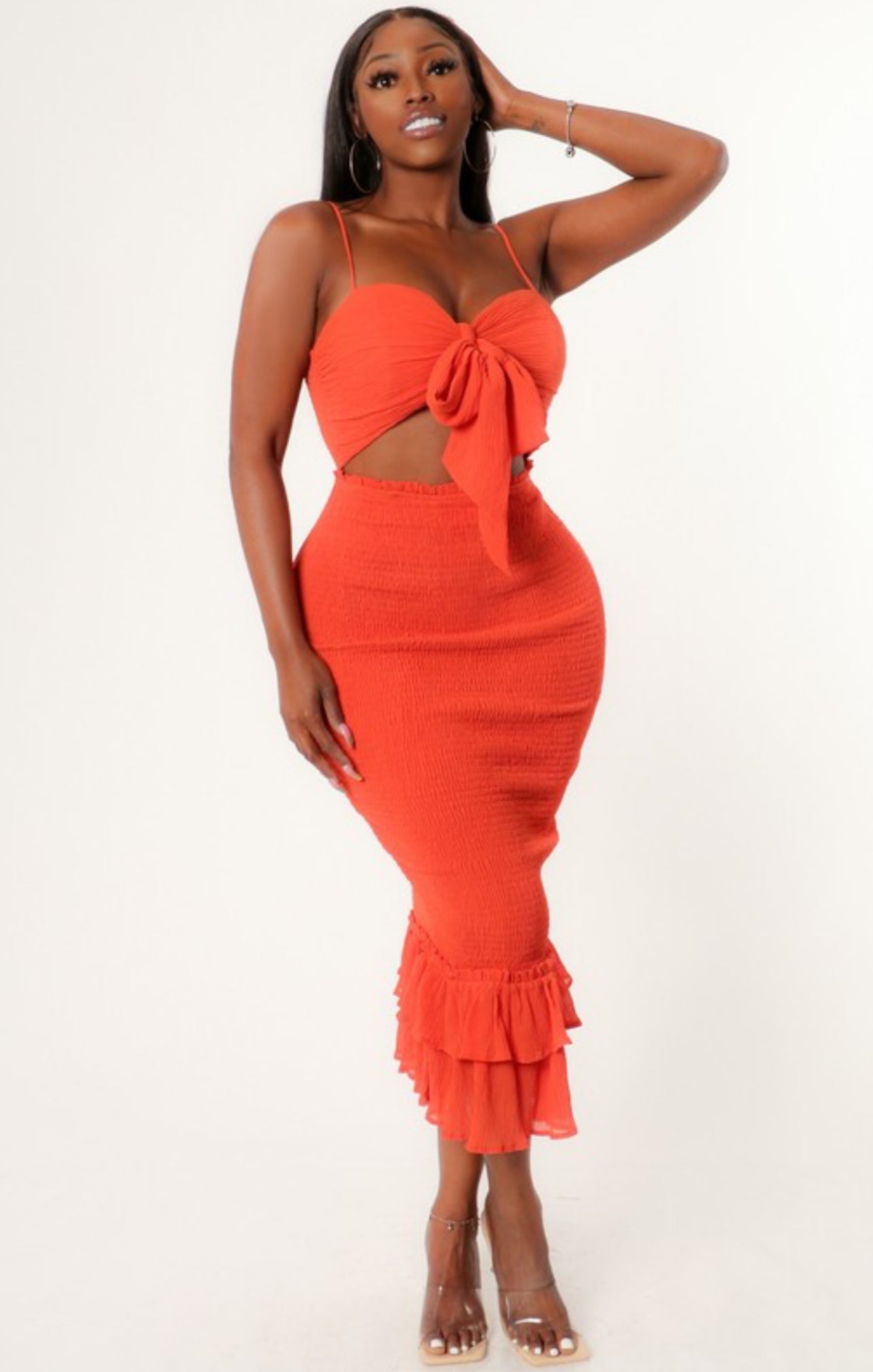 Perfect fit collection. This dress has tons of stretch in the waist and in the back of the dress.