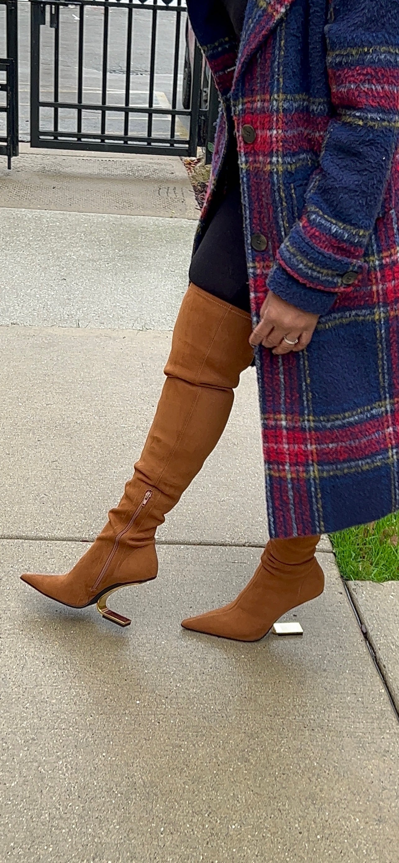 Tan suede gold boot