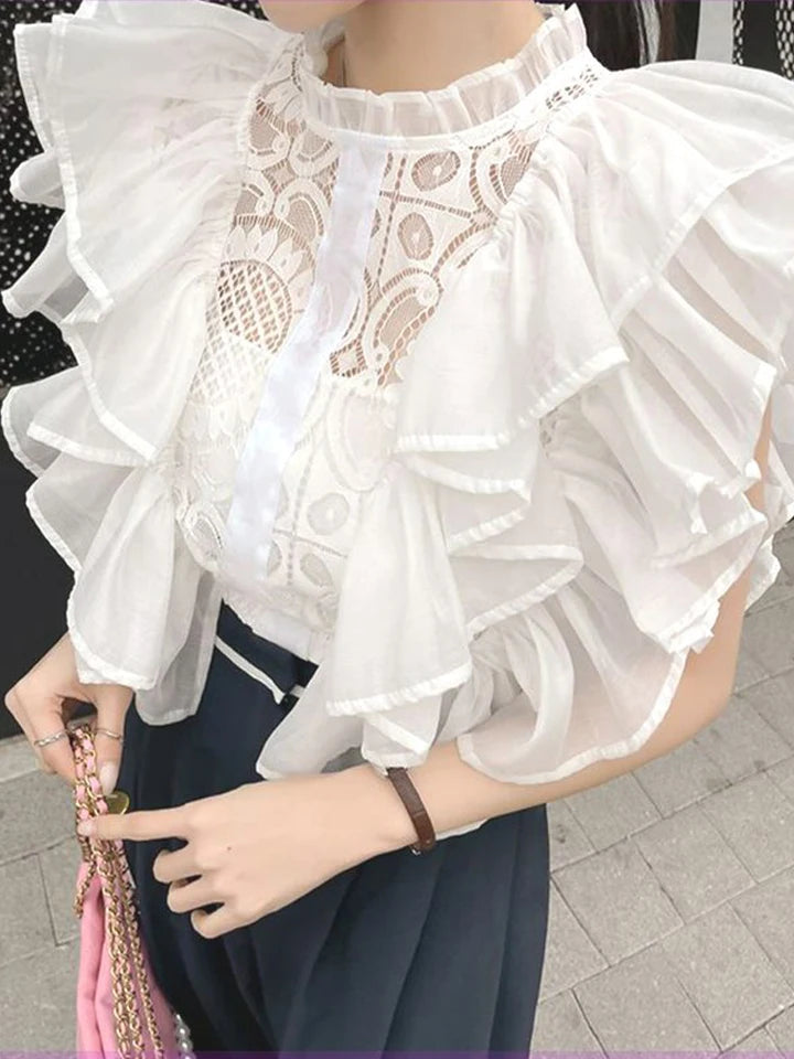 Serve sweet drama in the Vivienne Lace Flutter Top– where romance meets runway. This head-turning top features a sheer lace high-neck crop top.